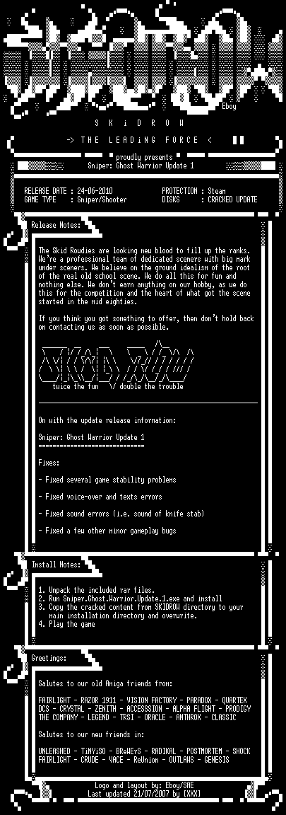 | FiLENAME: | Sniper.Ghost.Warrior.Update.1-SKIDROW.rar |