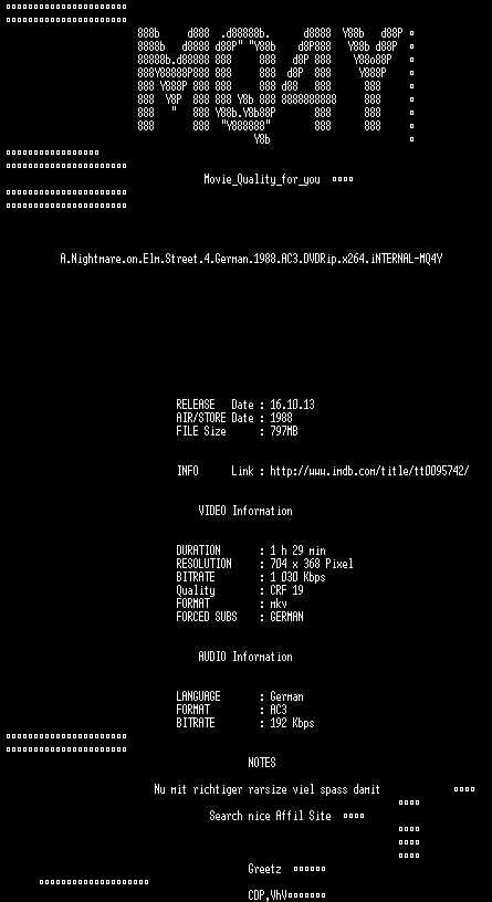 | FiLENAME: | A.Nightmare.on.Elm.Street.4.German.1988.AC3.DVDRip.x264.iNTERNAL.REPACK-MQ4Y.mkv |