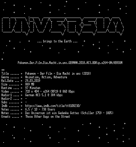 | FiLENAME: | Pokemon.Der.Film.Die.Macht.in.uns.GERMAN.2018.AC3.BDRip.x264-UNiVERSUM.mkv |