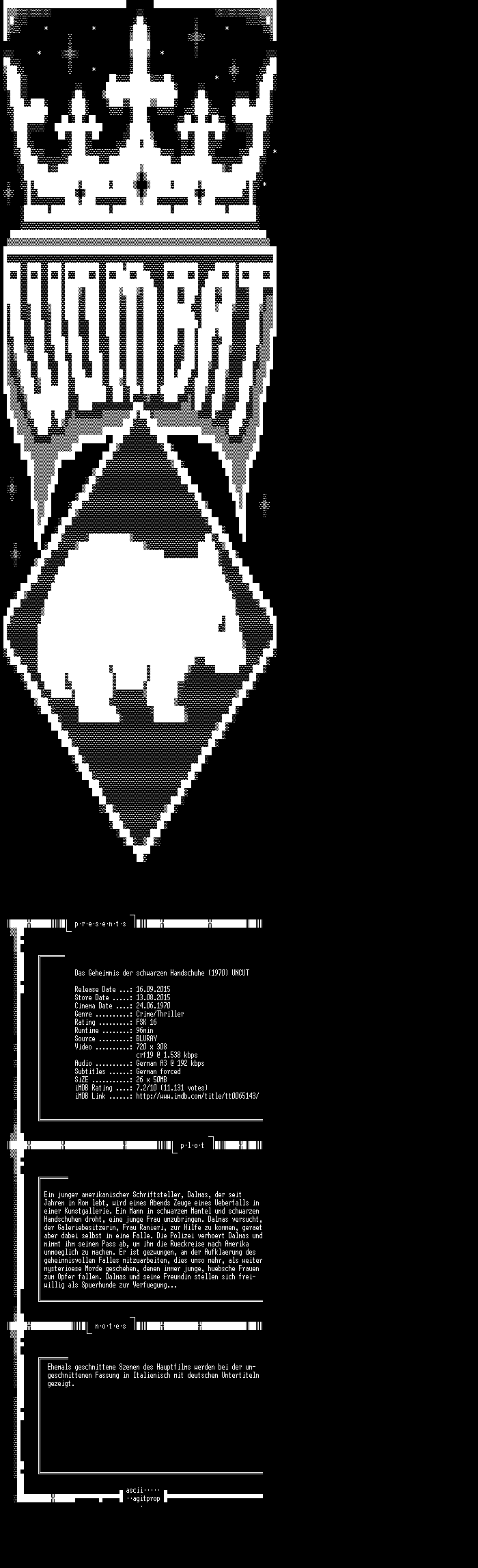 | FiLENAME: | Das.Geheimnis.der.schwarzen.Handschuhe.UNCUT.German.1970.BDRiP.x264-WOMBAT.mkv |
