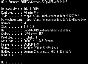 | FiLENAME: | Alle.Suenden.S01E02.German.720p.WEB.x264-WvF.mkv |