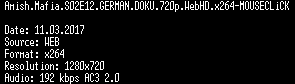 | FiLENAME: | Amish.Mafia.S02E12.GERMAN.DOKU.720p.WebHD.x264-MOUSECLiCK.mkv |