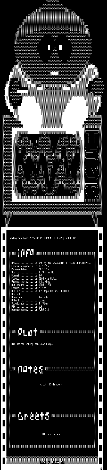 | FiLENAME: | Schlag.den.Raab.S09E08.Folge.55.2015-12-19.GERMAN.HDTV.720p.x264-TSCC.mkv |