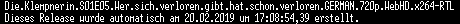 | FiLENAME: | Die.Klempnerin.S01E05.Wer.sich.verloren.gibt.hat.schon.verloren.GERMAN.720p.WebHD.x264-RTL.mkv |