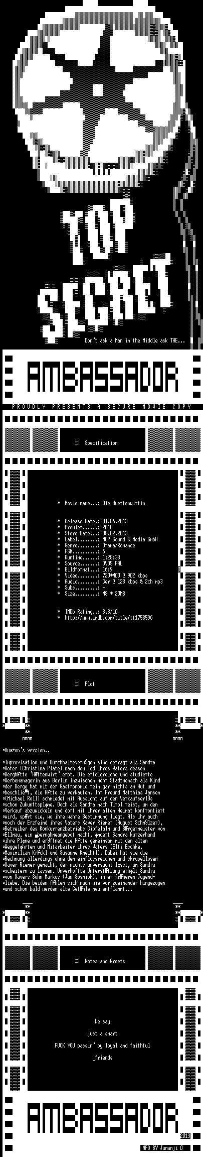 | FiLENAME: | Die.Huettenwirtin.German.2010.DVDRiP.XViD-AMBASSADOR.avi |