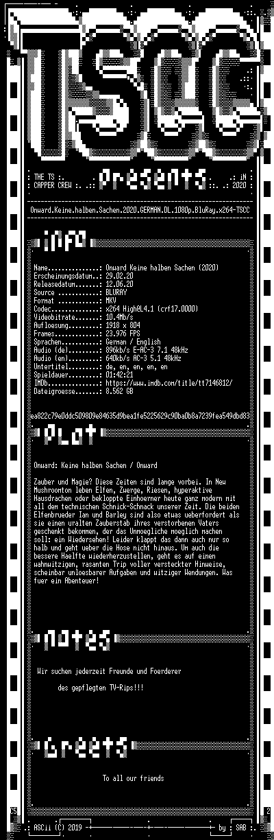 | FiLENAME: | Onward.Keine.halben.Sachen.2020.GERMAN.DL.1080p.BluRay.x264-TSCC.mkv |