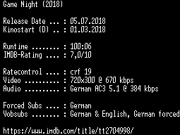 | FiLENAME: | Game.Night.German.2018.AC3.BDRip.x264-COiNCiDENCE.mkv |
