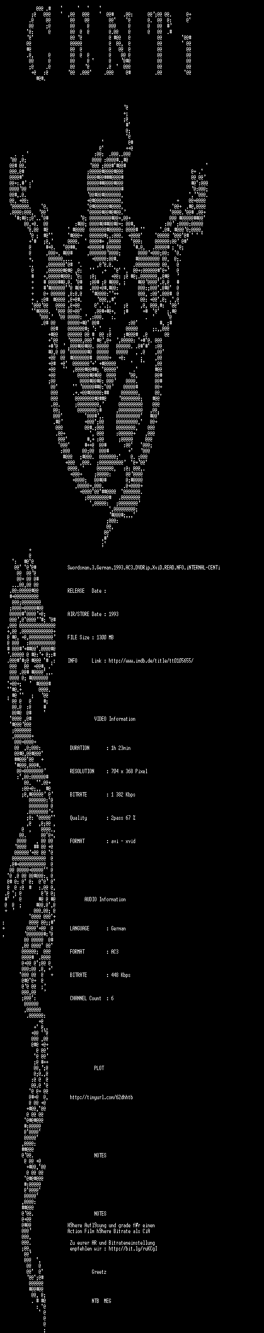 | FiLENAME: | Swordsman.3.German.1993.AC3.DVDRip.XviD.READ.NFO.iNTERNAL-CENTi.avi |