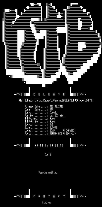 | FiLENAME: | Olaf.Schubert.Meine.Kaempfe.German.2012.AC3.DVDRip.XviD-NTB.avi |