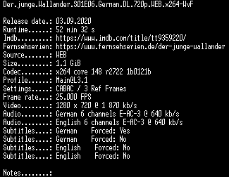 | FiLENAME: | Der.junge.Wallander.S01E06.German.DL.720p.WEB.x264-WvF.mkv |