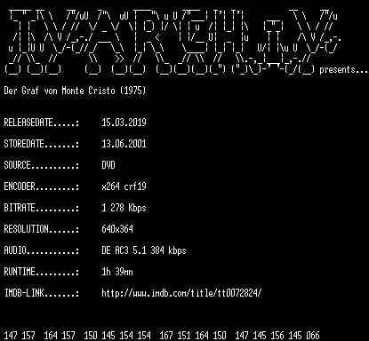 | FiLENAME: | Der.Graf.von.Monte.Cristo.1975.German.DVDRip.x264.iNTERNAL-TVARCHiV.mkv |