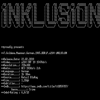 | FiLENAME: | 7.Goldene.Maenner.German.1965.BDRiP.x264-iNKLUSiON.mkv |