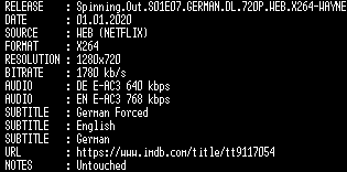 | FiLENAME: | Spinning.Out.S01E07.GERMAN.DL.720P.WEB.X264-WAYNE.mkv |