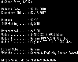 | FiLENAME: | A.Ghost.Story.2017.German.DTS.DL.1080p.BluRay.x264-COiNCiDENCE.mkv |