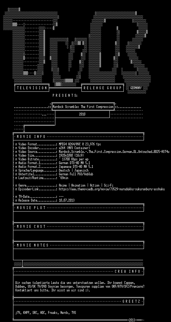 | FiLENAME: | Mardock.Scramble.The.First.Compression.GERMAN.5.1.DL.ANiME.BDRiP.1080p.WS.x264-TvR.mkv |