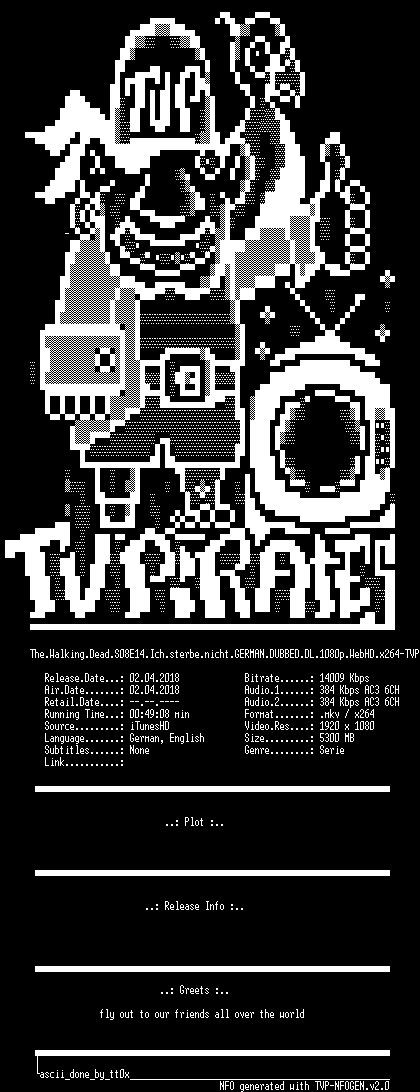 | FiLENAME: | The.Walking.Dead.S08E14.Ich.sterbe.nicht.GERMAN.DUBBED.DL.1080p.WebHD.x264-TVP.mkv |