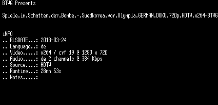 | FiLENAME: | Spiele.im.Schatten.der.Bombe.-.Suedkorea.vor.Olympia.GERMAN.DOKU.720p.HDTV.x264-BTVG.mkv |