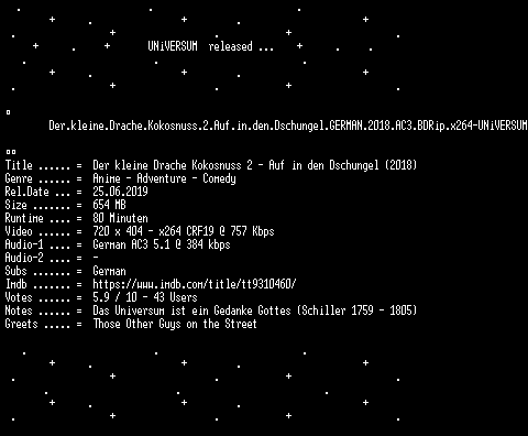 | FiLENAME: | Der.kleine.Drache.Kokosnuss.2.Auf.in.den.Dschungel.GERMAN.2018.AC3.BDRip.x264-UNiVERSUM.mkv |