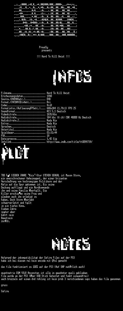 | FiLENAME: | Hard to Kill (Uncut) (1990) [GER-AC3 WS DVD].avi |