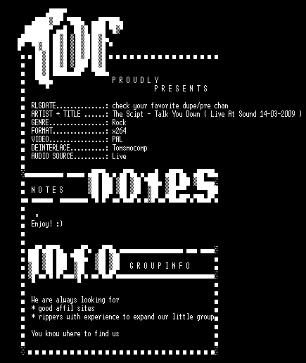| FiLENAME: | The_Scipt-Talk_You_Down_(Live_At_Sound_14-03-2009)-x264-2009-TDF_INT.mkv |