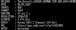 | FiLENAME: | The.Durrells.S03E08.GERMAN.720P.WEB.H264-WAYNE.mkv |