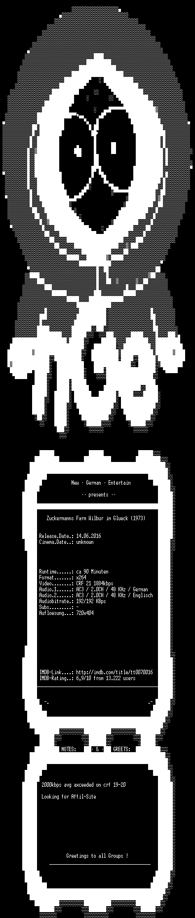 | FiLENAME: | Zuckermanns.Farm.Wilbur.im.Glueck.German.1973.DL.DVDRiP.x264.iNTERNAL-NGE.mkv |