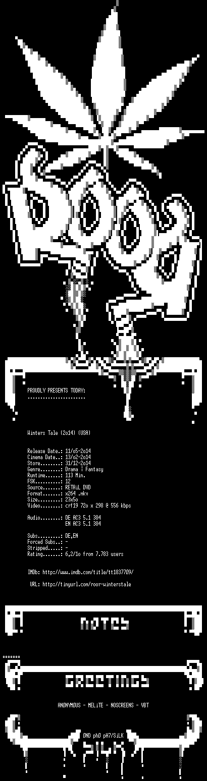 | FiLENAME: | Winters.Tale.German.DL.DVDRiP.x264-ROOR.mkv |