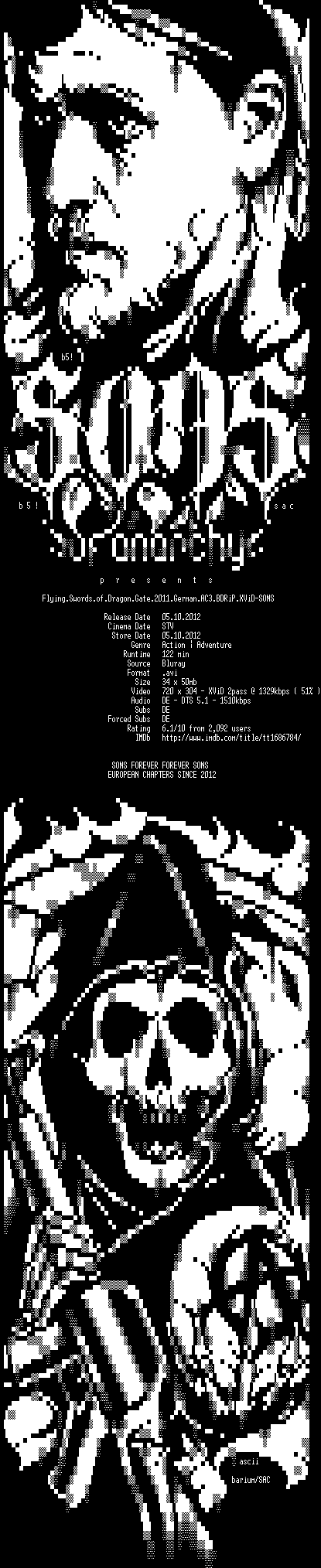 | FiLENAME: | Flying.Swords.of.Dragon.Gate.2011.German.AC3.BDRiP.XViD-SONS.avi |