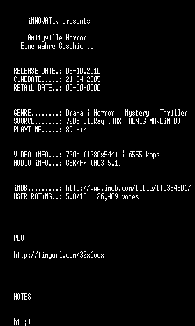 | FiLENAME: | Amityville Horror - Eine wahre Geschichte (2005) [GER 720p BD].mkv |