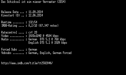 | FiLENAME: | Das.Schicksal.ist.ein.mieser.Verraeter.EXTENDED.German.DL.1080p.BluRay.x264-EXQUiSiTE.mkv |