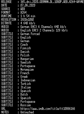 | FiLENAME: | 365.dni.2020.GERMAN.DL.1080P.WEB.X264-WAYNE.mkv |