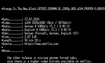 | FiLENAME: | Orange.Is.The.New.Black.S07E02.GERMAN.DL.1080p.WEB.x264.PROPER-EiSBOCK.mkv |