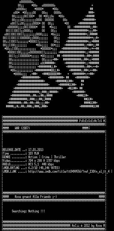 | FiLENAME: | WAR.2007.German.AC3.BDRip.XviD-Rose.avi |