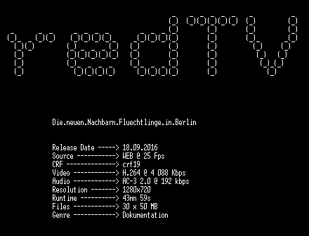 | FiLENAME: | Die.neuen.Nachbarn.Fluechtlinge.in.Berlin.GERMAN.DOKU.720p.WebHD.x264-redTV.mkv |