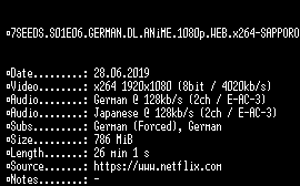 | FiLENAME: | 7SEEDS.S01E06.GERMAN.DL.ANiME.1080p.WEB.x264-SAPPORO.mkv |