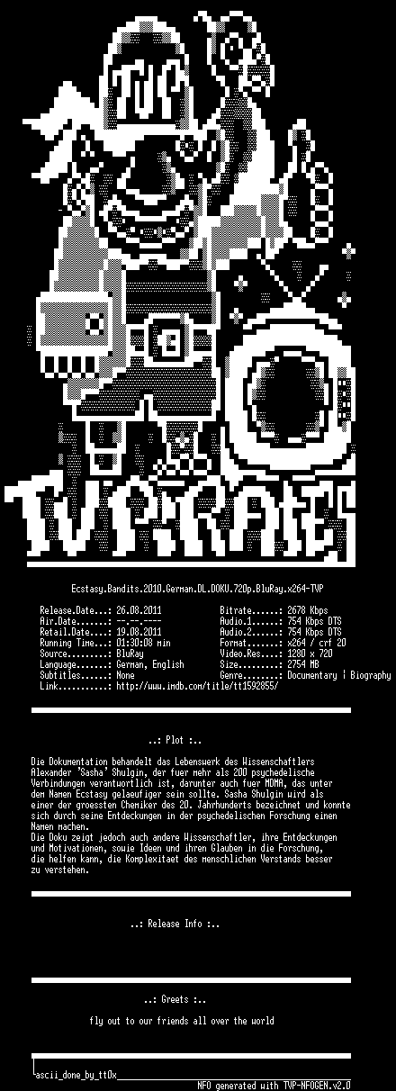 | FiLENAME: | Ecstasy.Bandits.2010.German.DL.DOKU.720p.BluRay.x264-TVP.mkv |