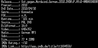 | FiLENAME: | Gut.gegen.Nordwind.German.2010.DVDRiP.XViD-AMBASSADOR.avi |