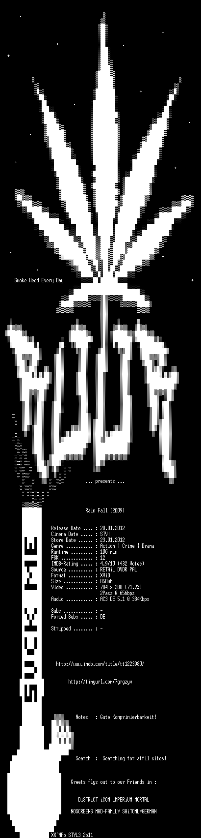 | FiLENAME: | Rain.Fall.2009.German.AC3.DVDRiP.XViD-ROOR.avi |
