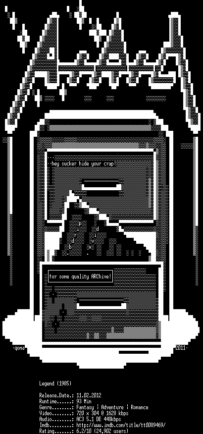 | FiLENAME: | Legende.German.1985.AC3.BDRip.XviD.INTERNAL-ARC.avi |