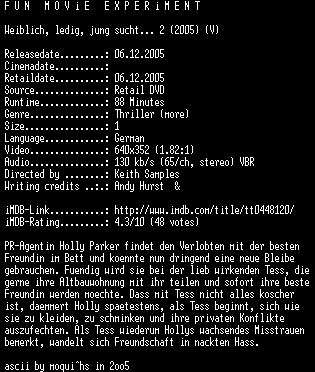| FiLENAME: | Weiblich.ledig.jung.sucht.2.German.2005.DVDRiP.XviD-FmE.avi |