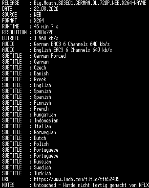 | FiLENAME: | Big.Mouth.S03E01.GERMAN.DL.720P.WEB.X264-WAYNE.mkv |