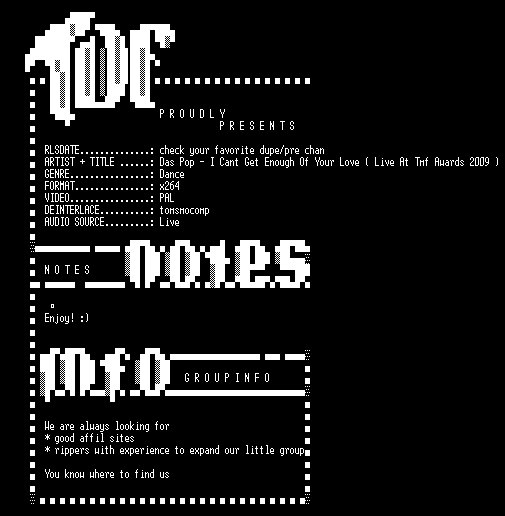 | FiLENAME: | Das_Pop-I_Cant_Get_Enough_Of_Your_Love_(Live_At_Tmf_Awards_2009)-x264-2009-TDF.mkv |