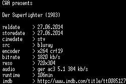 | FiLENAME: | Der.Superfighter.1983.German.BDRip.x264.iNTERNAL-CWA.mkv |