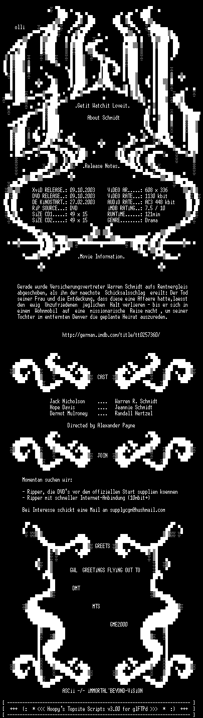 | FiLENAME: | About Schmidt (2003) [GER-AC3 WS DVD] CD2.avi |