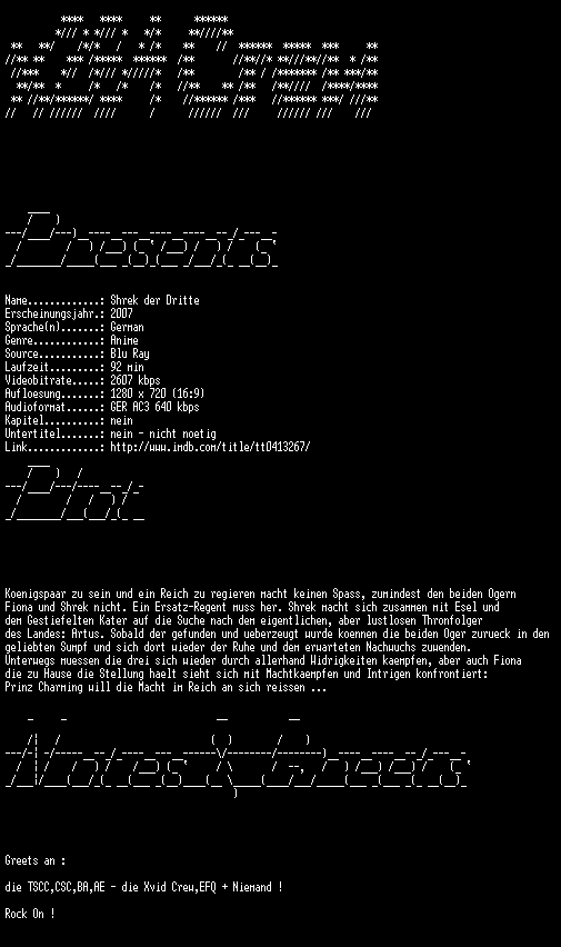 | FiLENAME: | Shrek der Dritte (2007) [GER 720p BD].mkv |