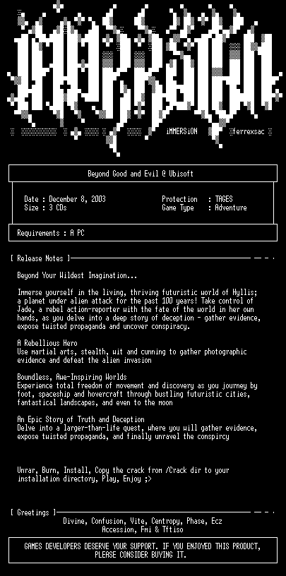 | FiLENAME: | Beyond Good and Evil CD3-iMMERSiON.bin |