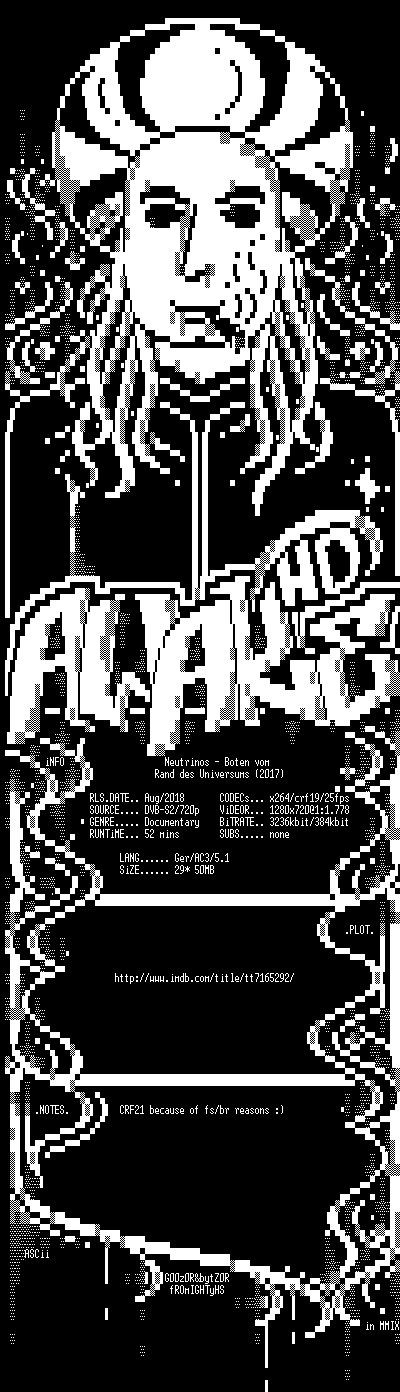 | FiLENAME: | Neutrinos.Boten.vom.Rand.des.Universums.GERMAN.DOKU.720p.HDTV.x264-aWake.mkv |