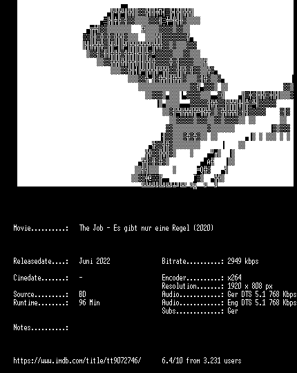 | FiLENAME: | The.Job.Es.gibt.nur.eine.Regel.2020.German.DL.1080p.BluRay.x264-LizardSquad.mkv |