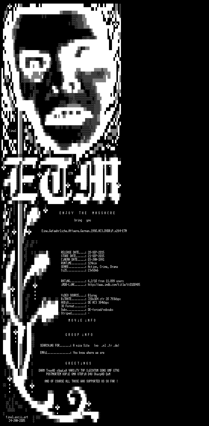 | FiLENAME: | Eine.Gefaehrliche.Affaere.German.1990.AC3.DVDRiP.x264-ETM.mkv |