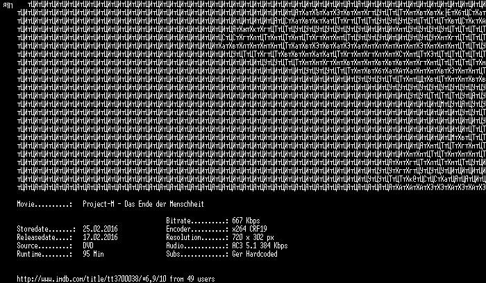 | FiLENAME: | Project.M.Das.Ende.der.Menschheit.2014.German.DVDRip.x264-LizardSquad.mkv |